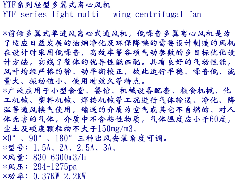 YTF系列輕型多翼式離心通風(fēng)機(jī)